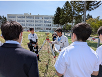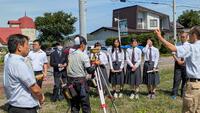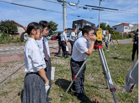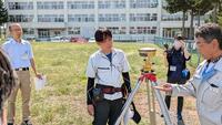 本日の地理総合の授業では、地図の作成方法に関する講話と、測量の様子を実際に見学・体験する貴重な機会をいただきました。