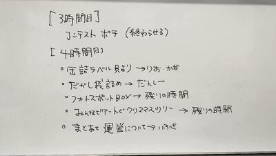 ホワイトボードには、3時間目のやることリストが……「終わらせる」の文字が!!