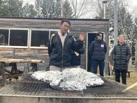 今回は「ウッドプランク」という焼肉スタイルを実践しました。 「ウッド(木)」「プランク(板)」を用意し、池田町の山幸ブドウジュースを染み込ませます。
