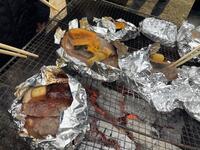 2つの炭台のうち、片方は火力が弱め。そこで「直接炭の上に置いたらどうなる?」と、大人も研究心を発揮。