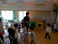 園児たちと対面し、まずは自己紹介。そして「ワクワクドキドキ企画!頑張るぞ!」と元気に声をかけ、活動がスタートしました。