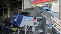 ▲枝ごとブドウが入れられ除梗破砕機で仕分けされます