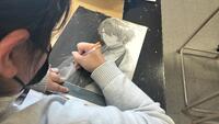 「うまく似せられなーい!」とか「なにがちがうんだー!」とか言って、もがきながら気づきを持って成長するための特訓、練習らしいです。真っ白なキャンバスに向き合う池高生は、とても集中しています。底冷えする寒〜い教室の空気が、よりいっそうピーンと張り詰めます。