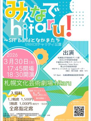 年度末も年度末、3月30日(月)に、札幌文化芸術劇場hitaruにて開催された「みんなでhitaru!~SIT Bandとなかまたち~」に出演してまいりました!